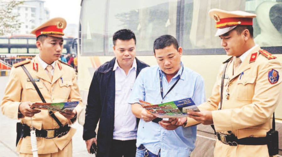 Đội cảnh sát giao thông đường bộ số 6 cũng phối hợp bến xe Mỹ Đình tổ chức kiểm tra, rà soát từng phương tiện trước giờ xuất bến; đồng thời kết hợp tuyên truyền, nhắc nhở các lái xe chấp hành nghiêm quy định về bảo đảm an toàn giao thông khi vận tải hành khách đường dài. Quá trình kiểm tra, lực lượng cảnh sát giao thông tiến hành phát tờ rơi tuyên truyền, kiểm tra nồng độ cồn, test nhanh ma túy đối với lái xe; đồng thời kiểm tra các thiết bị giám sát hành trình, camera ghi nhận hình ảnh lái xe nhằm kịp thời phát hiện, xử lý nghiêm hành vi vi phạm.