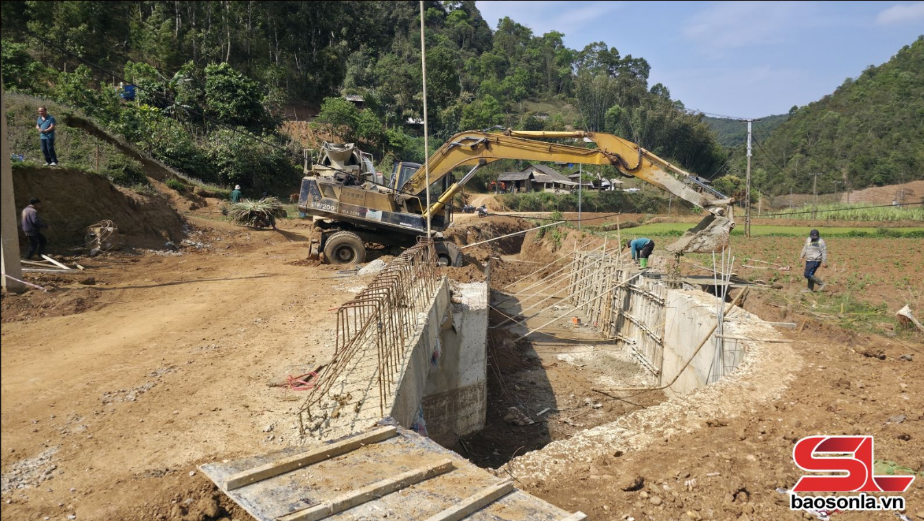 Tuyến đường từ trung tâm xã Phiêng Pằn đến 4 bản khu vực biên giới đang được xây dựng.