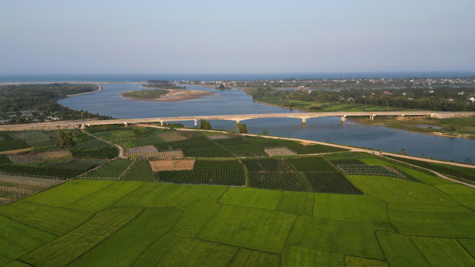 Tuyến đường ven biển Dung Quất - Sa Huỳnh uốn lượn qua sông, đầm và rừng dương. Ảnh: Chí Đại.