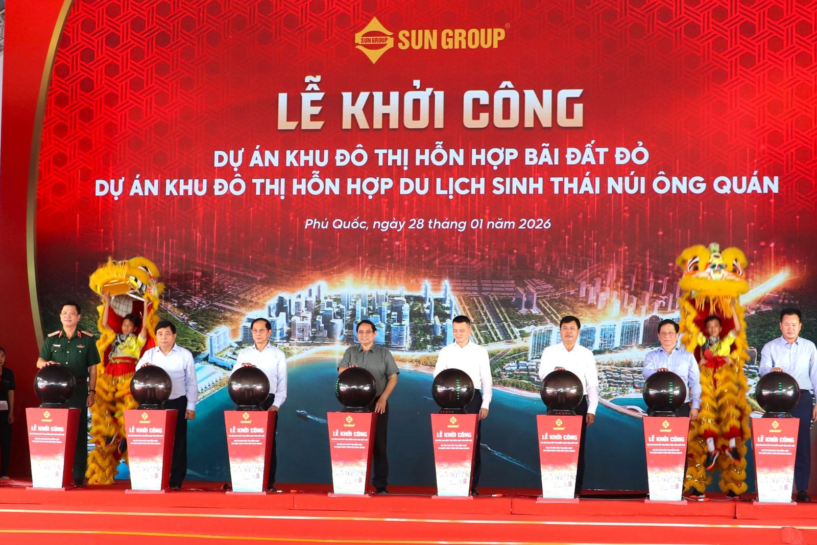 Sáng 28/1, tại đặc khu Phú Quốc, Thủ tướng Phạm Minh Chính dự lễ khởi công xây dựng Khu đô thị hỗn hợp Bãi Đất Đỏ và Khu đô thị hỗn hợp du lịch sinh thái Núi Ông Quán.