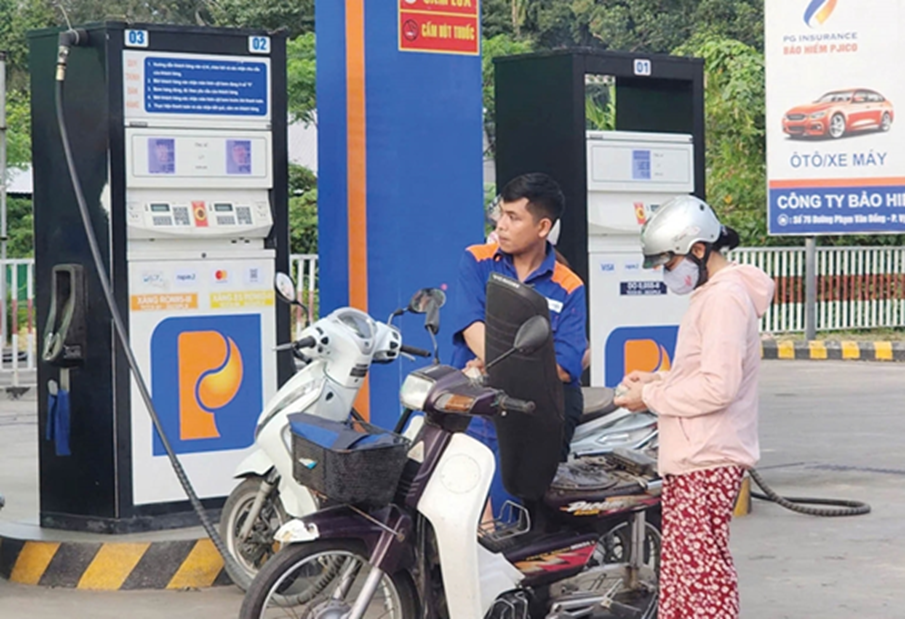 Người dân Huế đổ xăng cho xe máy