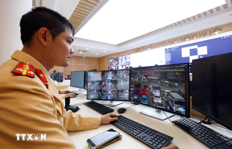 Các camera AI hỗ trợ phát hiện vi phạm trật tự, an toàn giao thông. (Ảnh: Phạm Kiên/TTXVN)