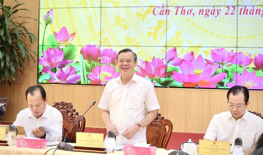 Chủ tịch UBND thành phố Cần Thơ Trương Cảnh Tuyên phát biểu chỉ đạo tại phiên họp