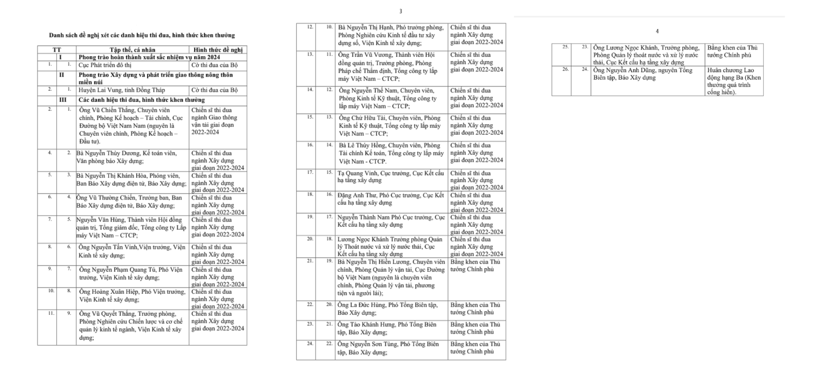 Để có thông tin trước khi trình Hội đồng Thi đua - Khen thưởng Bộ Xây dựng xem xét khen thưởng, Bộ Xây dựng đăng tải công khai lên Cổng thông tin điện tử Bộ danh sách tập thể, cá nhân được đề nghị xét khen thưởng để lấy ý kiến