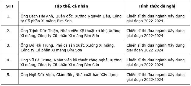 Để có thông tin trước khi trình Hội đồng Thi đua - Khen thưởng Bộ Xây dựng xem xét khen thưởng, Bộ Xây dựng đăng tải công khai lên Cổng Thông tin điện tử Bộ danh sách tập thể, cá nhân được đề nghị xét khen thưởng để lấy ý kiến.