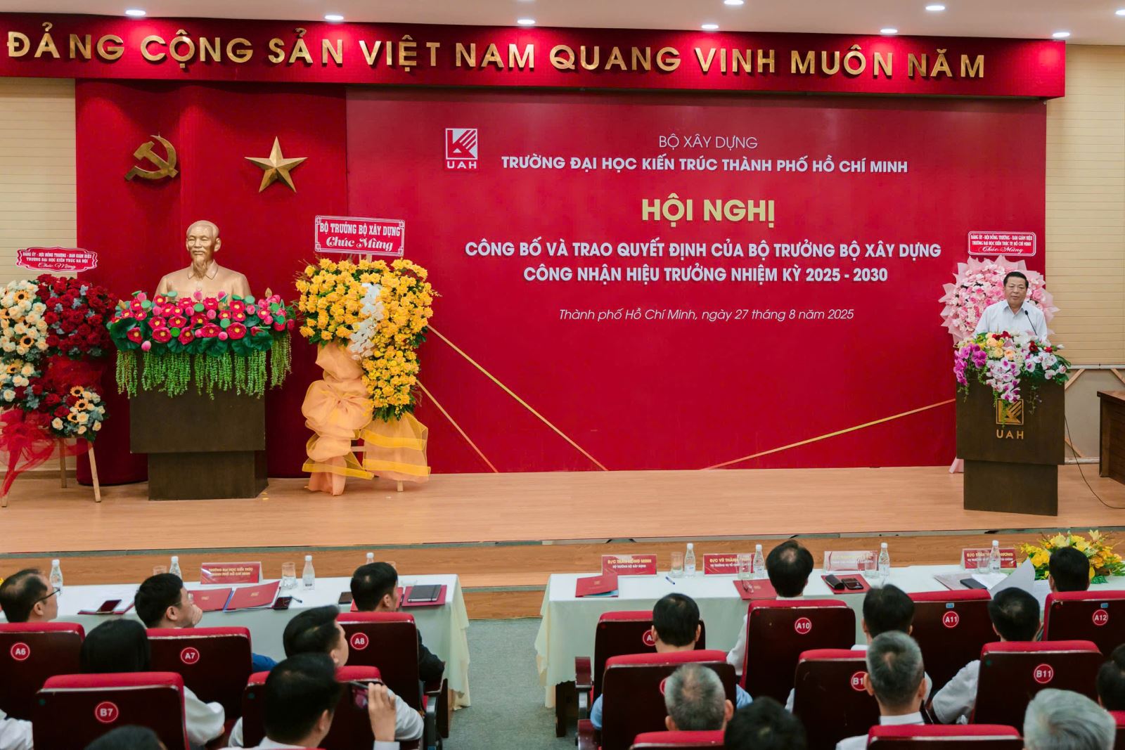 Chiều 27/8, Bộ trưởng Trần Hồng Minh đã trao quyết định công nhận Hiệu trưởng Trường Đại học Kiến trúc Thành phố Hồ Chí Minh (TP.HCM) nhiệm kỳ 2025 - 2030 cho PGS.TS. Phạm Trọng Thuật.