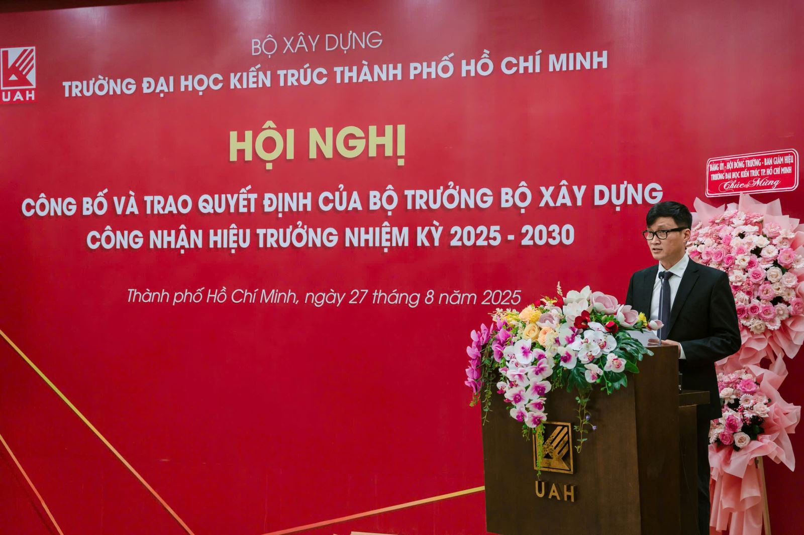 Tại buổi lễ, PGS.TS. Phạm Trọng Thuật chia sẻ, ông rất vinh dự khi chính thức nhận nhiệm vụ Hiệu trưởng Trường Đại học Kiến trúc TP.HCM - một ngôi trường có bề dày lịch sử hơn nửa thế kỷ, nơi đã đào tạo nhiều thế hệ kiến trúc sư, kỹ sư, nhà thiết kế có ảnh hưởng sâu rộng đến diện mạo đô thị của đất nước.