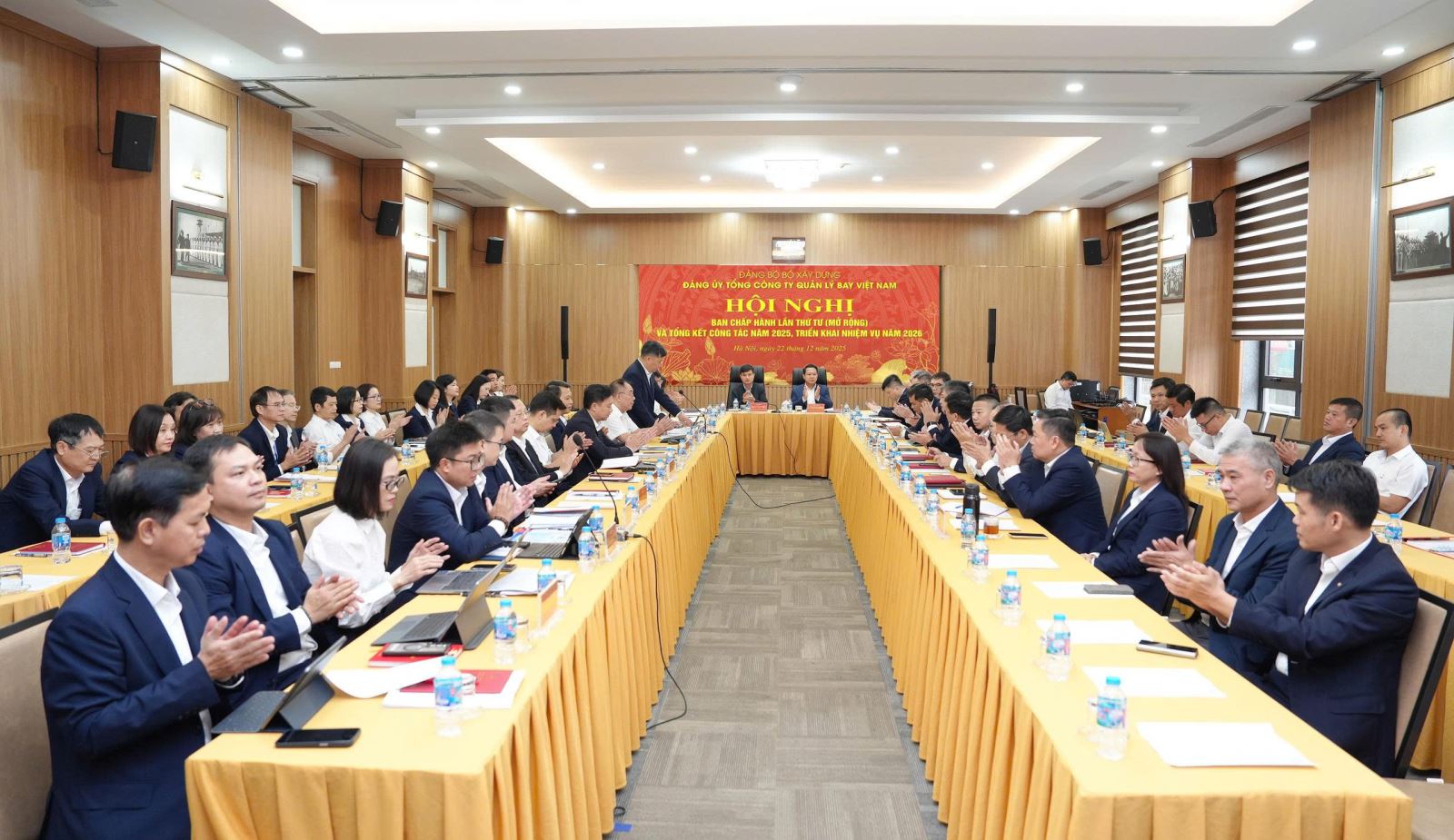 Bám sát phương châm "Đoàn kết - Kỷ cương - Trách nhiệm", trong năm 2025, Đảng ủy Tổng công ty đã lãnh đạo toàn Đảng bộ vượt qua nhiều thách thức từ biến động tình hình thế giới và thời tiết cực đoan đảm bảo an toàn cho 100% chuyến bay trong vùng trời trách nhiệm, tham gia phối hợp bảo vệ vững chắc an ninh không phận quốc gia. Đặc biệt, Đảng ủy và Ban lãnh đạo Tổng công ty đã tập trung chỉ đạo các cơ quan, đơn vị phối hợp chặt chẽ với các đơn vị liên quan, triển khai đồng bộ các giải pháp đảm bảo an ninh, an toàn bay tuyệt đối phục vụ các sự kiện chính trị trọng đại của đất nước, trọng tâm là đợt cao điểm A50 và A80. Đến thời điểm hiện tại, tình hình sản xuất kinh doanh đã đạt được nhiều kết quả đáng ghi nhận, khẳng định bản lĩnh và năng lực điều hành của Tổng Công ty trong mọi tình huống.