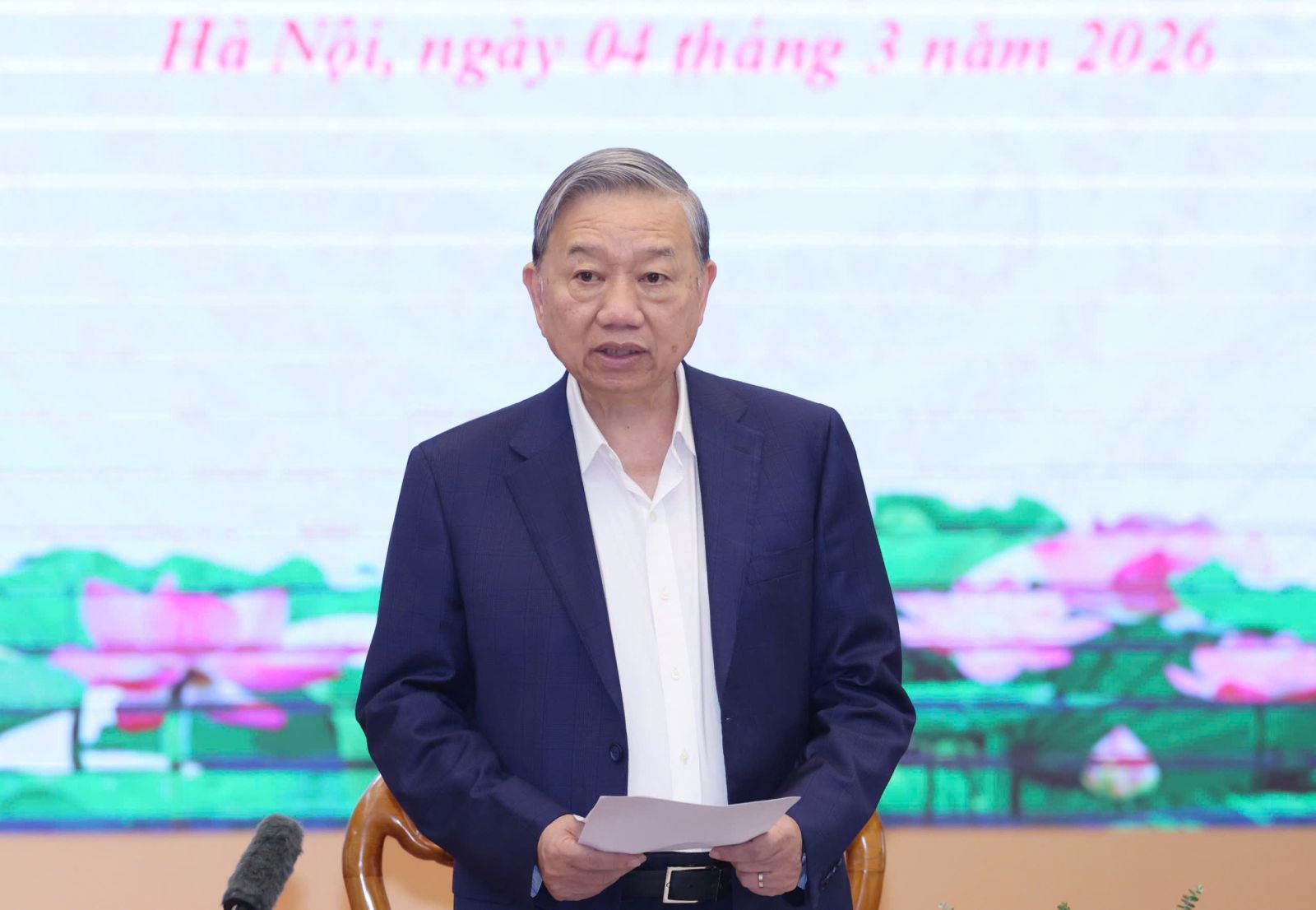 Chiều 4/3, tại Hà Nội, Tổng Bí thư Tô Lâm làm việc với Ban Tuyên giáo và Dân vận Trung ương về việc chuẩn bị nội dung “Quy định về công tác chính trị, tư tưởng trong Đảng”.