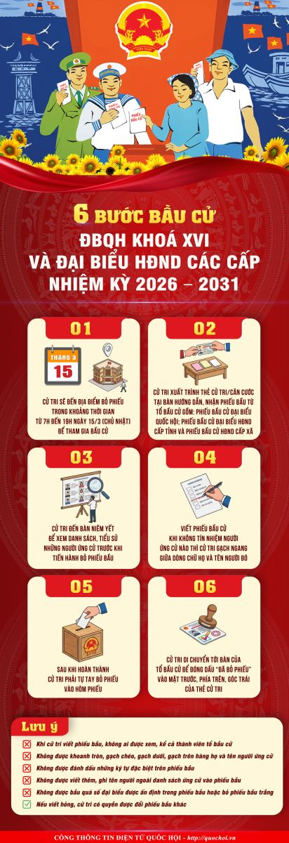 Sau đây là quy trình bỏ phiếu bầu cử cuộc bầu cử đại biểu Quốc hội khóa XVI và đại biểu HĐND các cấp nhiệm kỳ 2026-2031:
