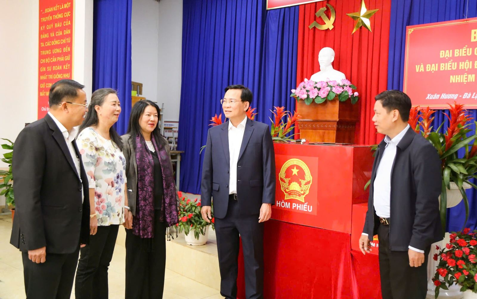 Đồng chí Hồ Văn Mười, Ủy viên BCH Trung ương Đảng, Phó Bí thư Tỉnh ủy, Chủ tịch UBND tỉnh, Phó Chủ tịch Ủy ban bầu cử tỉnh, Trưởng Đoàn kiểm tra số 5 dẫn đầu Đoàn công tác đến kiểm tra khu vực bỏ phiếu số 17 tại Trường THCS&THPT Chi Lăng, số 4 Lữ Gia, phường Lâm Viên - Đà Lạt
