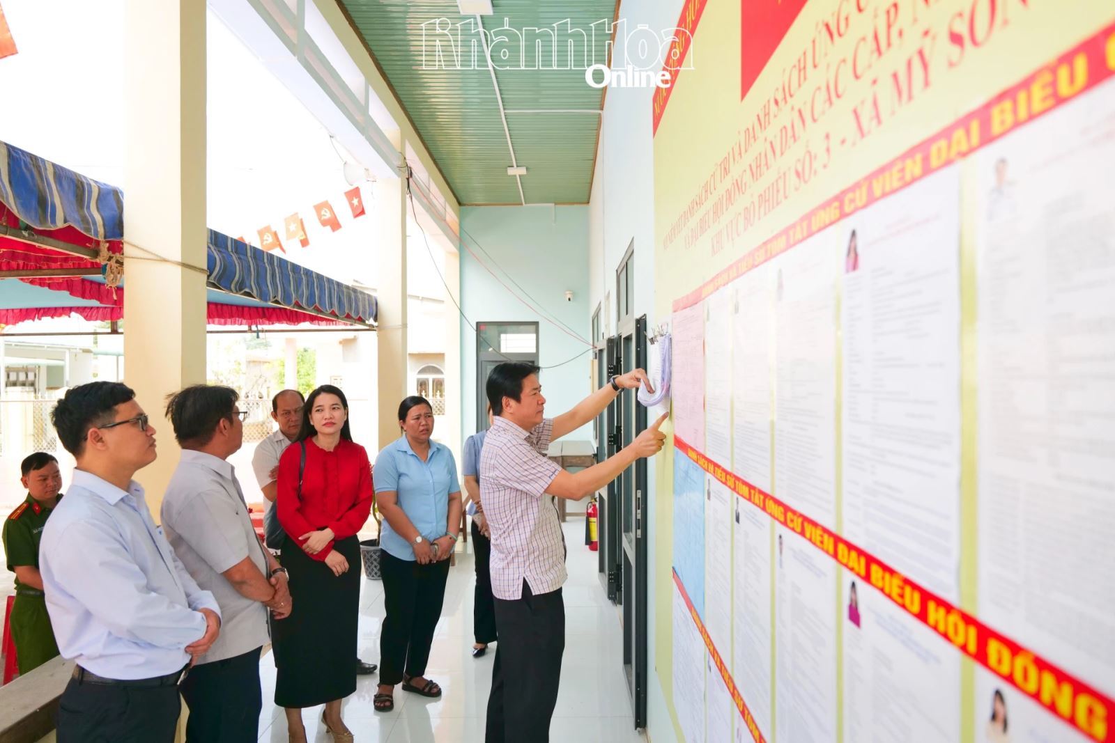 Đoàn đã kiểm tra Khu vực bỏ phiếu số 3 (tại Trường THCS Lê Đình Chinh) và số 18 (Tổ dân phố 24) tại phường Đông Hải; Khu vực bỏ phiếu số 1 (thôn Phú Thuận), số 2 (thôn Phú Thạnh - Phú Thủy) và số 3 (thôn Mỹ Hiệp) tại xã Mỹ Sơn; Khu vực bỏ phiếu số 9 (thôn Ninh Quý 1) và số 10 (thôn Ninh Quý 2) tại xã Phước Hậu.