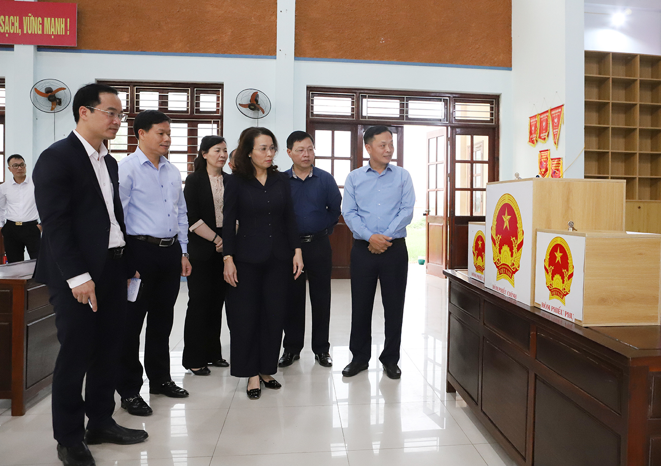 Cùng đi có đồng chí Nguyễn Thị Hà, Ủy viên Ban Thường vụ Tỉnh ủy, Chủ tịch Ủy ban MTTQ tỉnh, Phó Trưởng Ban Chỉ đạo bầu cử tỉnh, Phó Chủ tịch Ủy ban bầu cử tỉnh; lãnh đạo Văn phòng Tỉnh ủy, Sở Nội vụ.