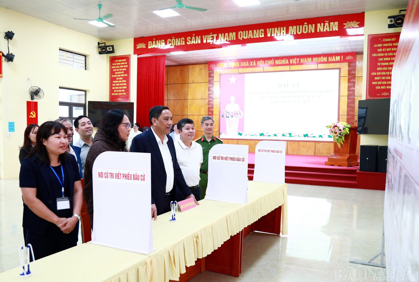 Chiều 14/3, đồng chí Hoàng Giang, Phó Bí thư Thường trực Tỉnh ủy, Phó Trưởng Ban Chỉ đạo Bầu cử tỉnh Lào Cai đã tới kiểm tra công tác chuẩn bị bầu cử tại phường Văn Phú và phường Nam Cường. Cùng đi có lãnh đạo Văn phòng Tỉnh ủy.