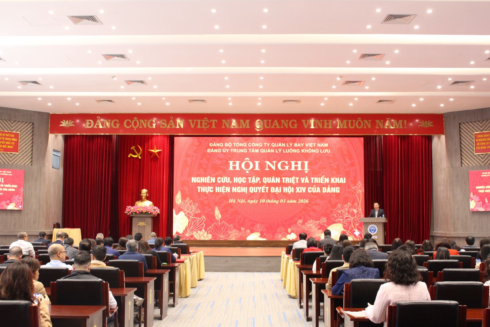 Thực hiện Chỉ thị số 01-CT/TW ngày 23/01/2026 của Bộ Chính trị về nghiên cứu, học tập, quán triệt, tuyên truyền và triển khai thực hiện Nghị quyết Đại hội đại biểu toàn quốc lần thứ XIV của Đảng và hướng dẫn của Đảng ủy cấp trên, Đảng ủy Tổng công ty Quản lý bay Việt Nam đã hoàn thành đợt sinh hoạt chính trị sâu rộng nghiên cứu, học tập, quán triệt và tuyên truyền Nghị quyết Đại hội đại biểu toàn quốc lần thứ XIV của Đảng. Đây là cơ sở vững chắc để toàn Đảng bộ Tổng công ty cụ thể hóa các mục tiêu chiến lược vào nhiệm vụ chính trị của Đảng bộ trong thời gian tới.