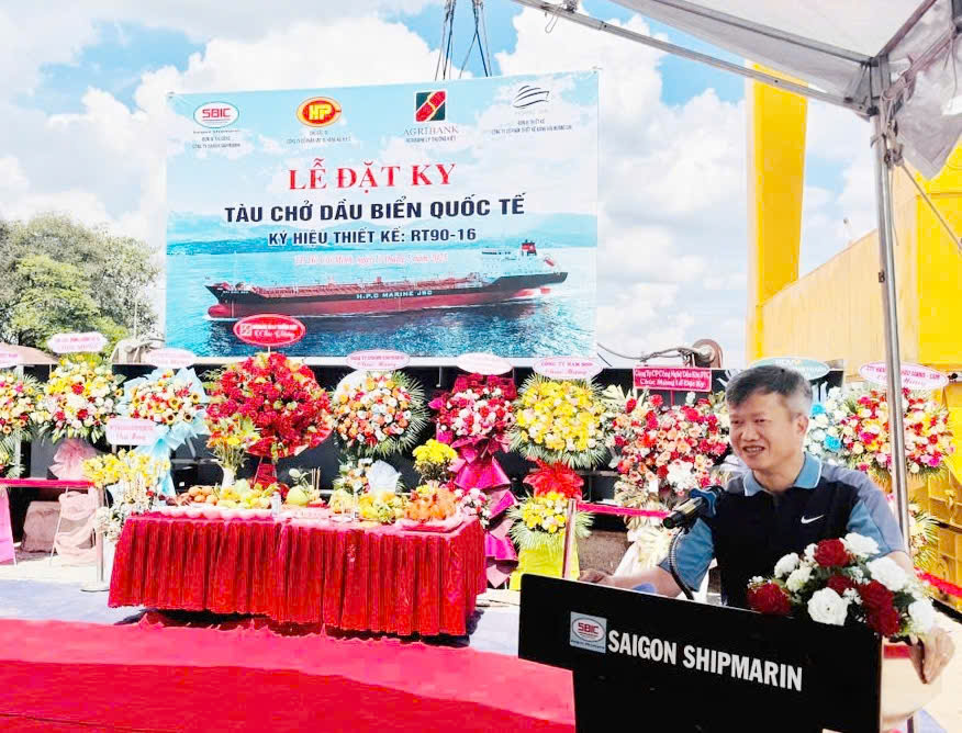 Phát biểu tại buổi Lễ đồng chí Dương Mạnh Cường – Tổng giám đốc Công ty đã chia sẻ: Đây là con tàu dầu 9000 DWT đầu tiên được đóng ở Khu vực phía Nam, để có được hợp đồng ngày hôm nay, cán bộ công nhân viên, người lao động toàn Công ty đã luôn cố gắng, nỗ lực và khẳng định tay nghề của đơn vị, đồng chí cũng bày tỏ sự tin tưởng của khách hàng thông qua các hợp đồng đã, đang và sẽ ký với Công ty là động lực để Công ty phát triển hơn nữa trong kỷ nguyên vươn mình cùng dân tộc.