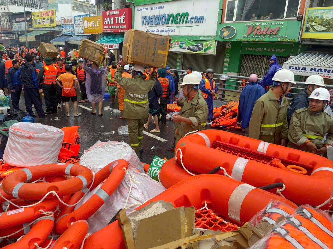 Bên cạnh đó, lực lượng cứu nạn còn trực tiếp vận chuyển phao áo, phao tròn và phao bè cứu sinh đến các điểm chỉ huy để phân bổ ngay cho các đội cứu hộ địa phương, phục vụ công tác sơ tán và bảo đảm an toàn trong đêm.