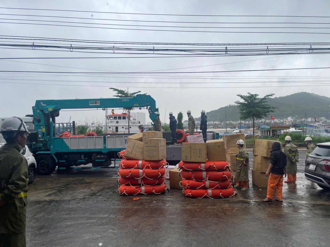Tại Sở chỉ huy tiền phương đặt tại nút giao Ngọc Hội (phường Tây Nha Trang), đoàn công tác tiến hành bàn giao 200 phao áo, 80 phao tròn và 15 phao bè cứu sinh cho Ban Chỉ huy Phòng chống thiên tai và các lực lượng tuyến đầu của tỉnh.