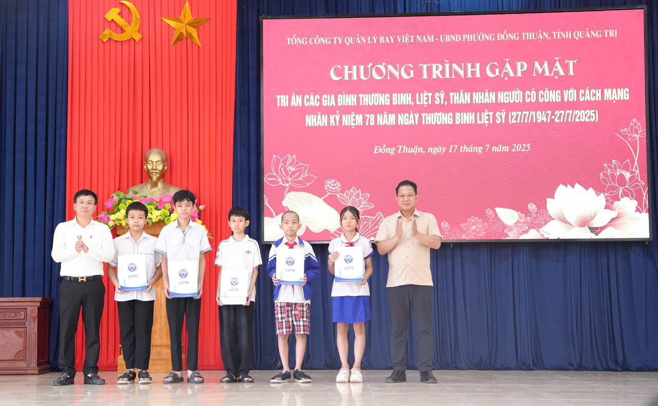 Chiều ngày 17/7, tiếp nối chương trình “Thắp sáng ngọn lửa tri ân trên những toạ độ anh hùng” vào ngày 16/7, đoàn công tác của Tổng Công ty do đồng chí Lê Hoàng Minh, Bí thư Đảng uỷ, Chủ tịch Hội đồng thành viên đã đến thăm và trao tặng những phần quà ý nghĩa cho các gia đình chính sách, người có công với cách mạng và các em học sinh vượt khó tại phường Đồng Thuận, tỉnh Quảng Trị (trước đây là thành phố Đồng Hới). Tên gọi "Đồng Thuận" mang ý nghĩa về sự đồng lòng, nhất trí, và hoạt động của VATM tại đây cũng thể hiện tinh thần đó.