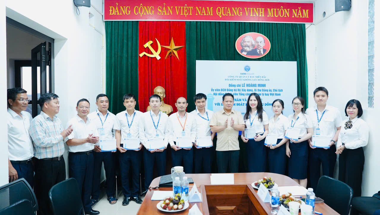 Cùng với việc tri ân cộng đồng, đoàn công tác đã tới thăm, làm việc tại Đài KSKL Đồng Hới. Buổi làm việc tập trung vào việc nắm bắt sâu sát những khó khăn, vướng mắc mà mỗi cán bộ, nhân viên công tác tại Đài KSKL và Đài VOR/DME trong quá trình công tác và cả trong cuộc sống thường nhật. Đồng chí Lê Hoàng Minh nhấn mạnh, việc đảm bảo một môi trường làm việc tốt và đời sống ổn định cho người lao động là ưu tiên hàng đầu của lãnh đạo Tổng Công ty.