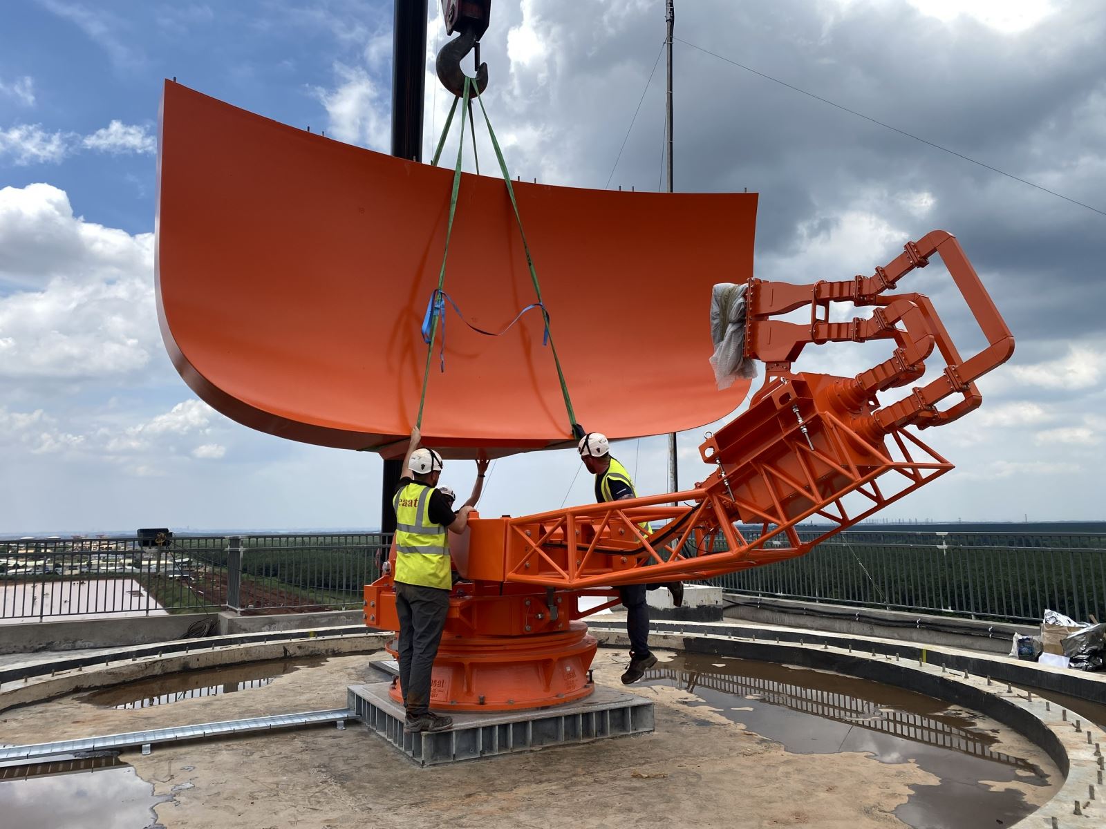Tiến hành lắp đặt hệ thống anten radar sơ cấp. Ảnh: VATM