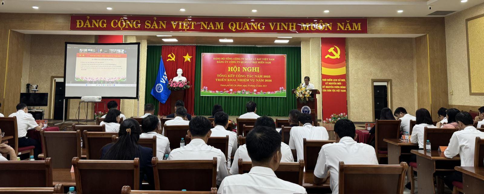Đảng bộ Công ty Quản lý bay miền Nam vừa tổ chức Hội nghị tổng kết công tác đảng năm 2025 và triển khai nhiệm vụ năm 2026 tại trụ sở Công ty. Tham dự và chỉ đạo Hội nghị có đồng chí Lê Bích Hòa, Phó Bí thư Đảng ủy Tổng công ty Quản lý bay Việt Nam dự và chỉ đạo Hội nghị.