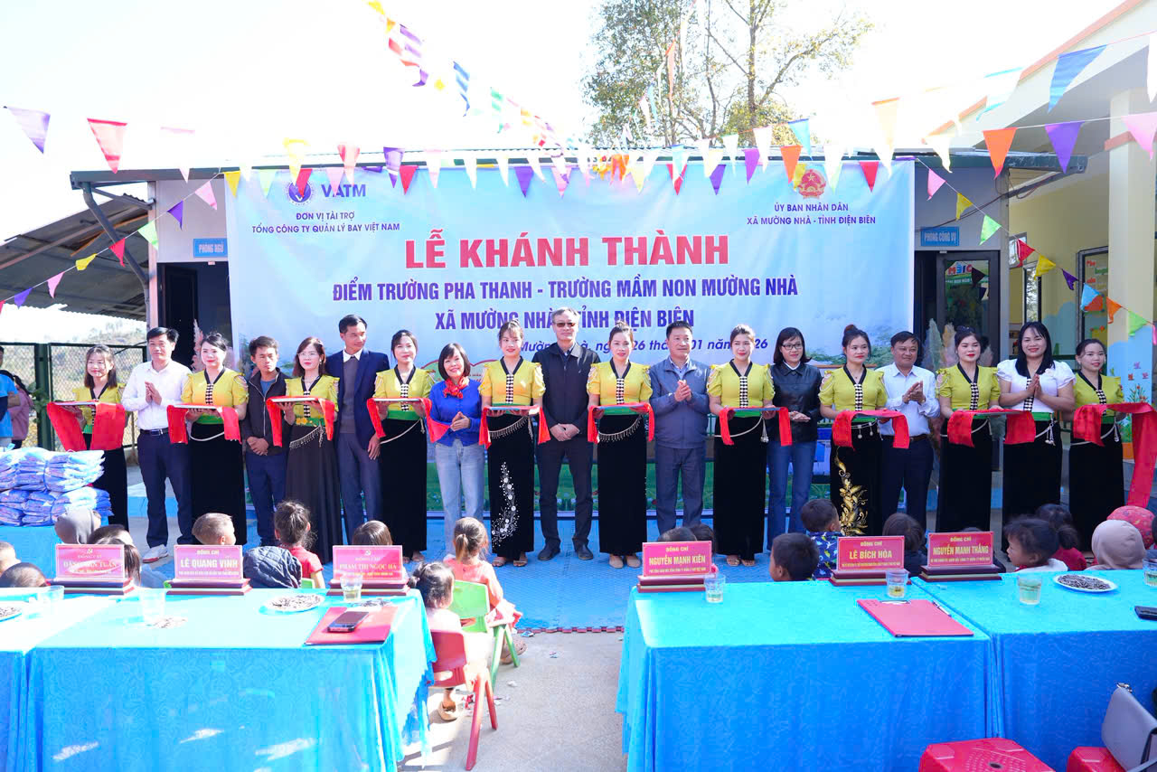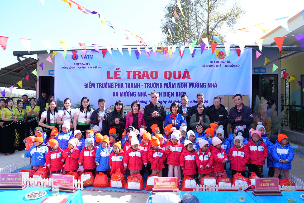 Vừa qua, tại điểm trường Pha Thanh - Trường Mầm non Mường Nhà, xã Mường Nhà, tỉnh Điện Biên, Tổng công ty Quản lý bay Việt Nam (VATM) đã phối hợp với chính quyền địa phương tổ chức Lễ khánh thành công trình xây dựng điểm trường Pha Thanh, đồng thời trao tặng nhiều phần quà ý nghĩa dành cho thầy cô giáo và các em học sinh nơi vùng cao, biên giới còn nhiều khó khăn.