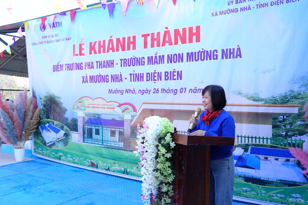 Phát biểu tại buổi lễ, đồng chí Lê Bích Hòa, Phó Bí thư Đảng ủy Tổng công ty, Chủ tịch Công đoàn Tổng công ty Quản lý bay Việt Nam nhấn mạnh, công trình điểm trường Pha Thanh là tình cảm, là sự sẻ chia của tập thể cán bộ, người lao động Tổng công ty Quản lý bay Việt Nam đối với sự nghiệp giáo dục tại địa phương còn nhiều khó khăn. Chúng tôi mong rằng công trình sẽ góp phần cải thiện điều kiện học tập, sinh hoạt cho các em học sinh mầm non, giúp các em có môi trường học tập an toàn, khang trang, tạo nền tảng vững chắc cho tương lai.