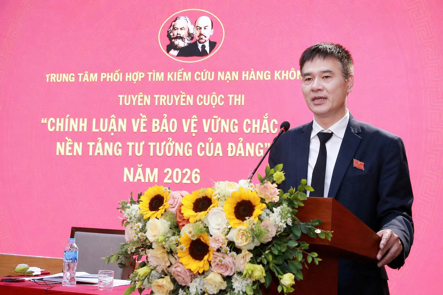 Bí thư Đảng ủy, Giám đốc Trung tâm Phối hợp tìm kiếm cứu nạn hàng không Nguyễn Văn Dũng phát động Cuộc thi chính luận “Bảo vệ vững chắc nền tảng tư tưởng của Đảng” năm 2026. Ảnh: VATM