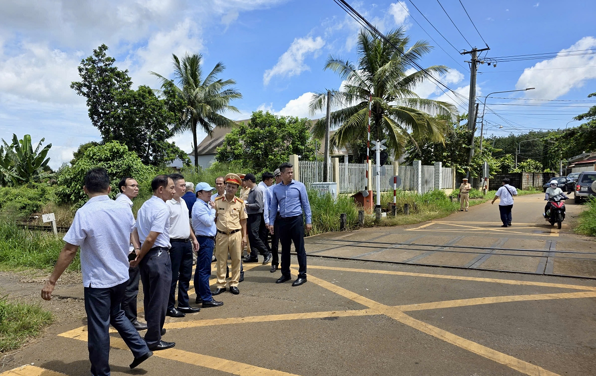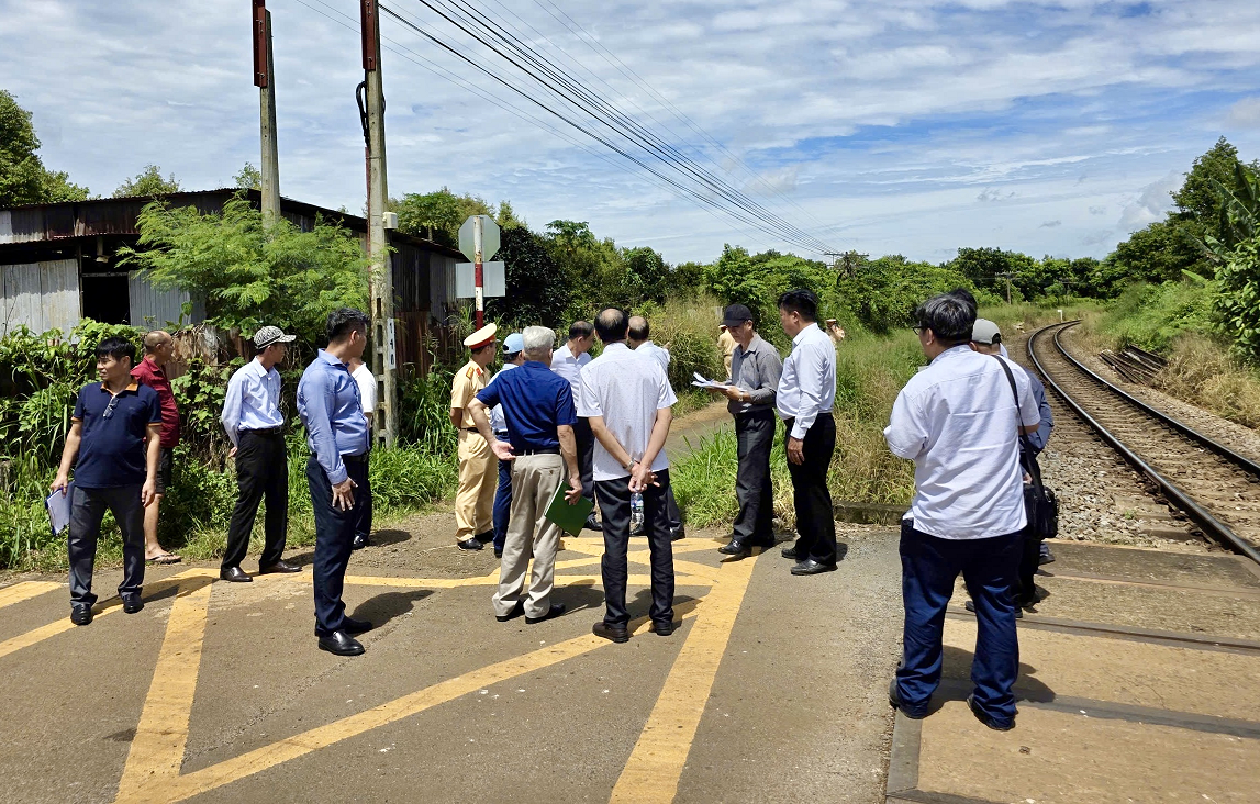 Đoàn công tác kiểm tra điểm giao cắt giữa đường sắt và đường bộ.
