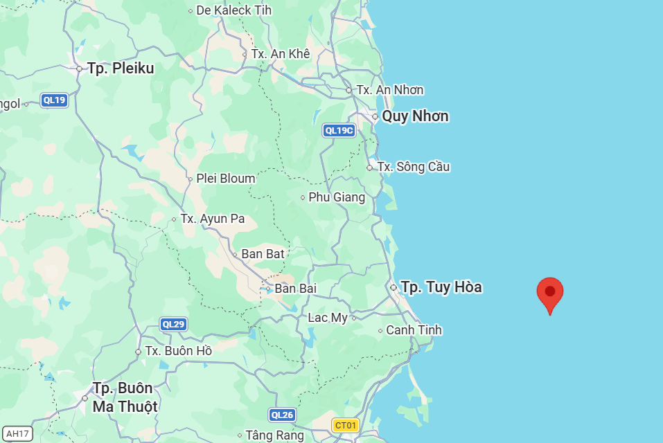 Vị trí tàu cá QNG 95157 TS gặp sự cố