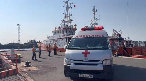 Các bệnh nhân được tàu SAR 272 đưa về cập cảng Trung tâm tại TP. Hồ Chí Minh, chuyển đến Bệnh viện Đa khoa Vũng Tàu để cấp cứu, điều trị chuyên sâu