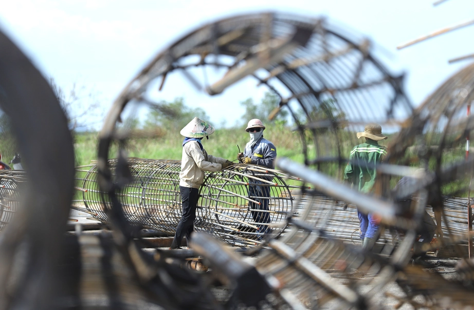 Tại nút giao Cẩm Quan, nơi đang hoàn thiện Trạm thu phí cao tốc Bắc - Nam, anh Nguyễn Văn Lợi, công nhân lắp dựng kết cấu thép, tranh thủ nghỉ tay lau mồ hôi sau ca làm buổi trưa. "Mấy tháng trước mưa nhiều, công việc bị chậm. Từ đầu năm đến nay, anh em xác định làm bù tiến độ, ai cũng cố gắng để kịp mốc vận hành", anh Lợi chia sẻ.