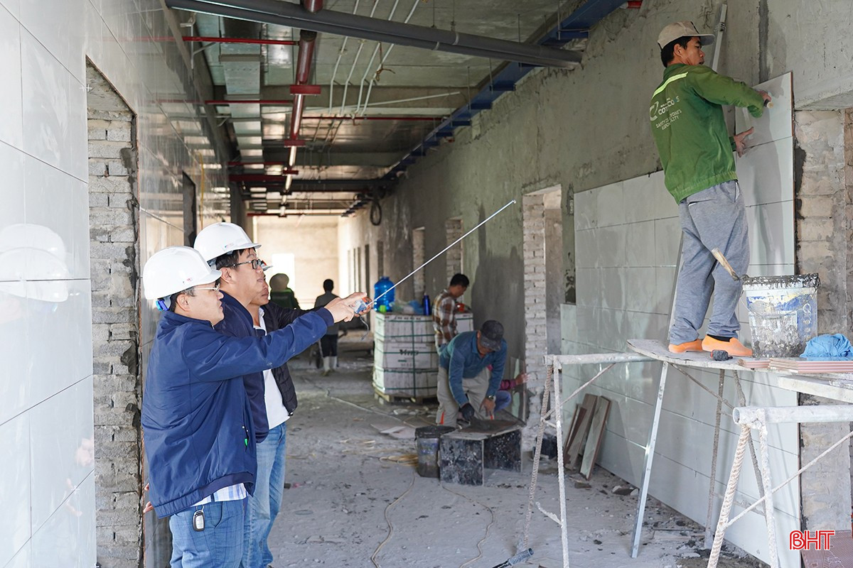 Hiện nay, nhà thầu đang tập trung nhân lực để hoàn thiện đồng thời nhiều hạng mục quan trọng. Khối nhà khám và điều trị 7 tầng đã hoàn thành phần móng và kết cấu chịu lực, đang triển khai phần kiến trúc và hệ thống kỹ thuật. Cụ thể, khối lượng ốp lát đạt khoảng 70%, hệ thống điện - cấp thoát nước đạt 70%, hệ thống phòng cháy chữa cháy và khí y tế đạt 60%. Các hạng mục phụ trợ và hệ thống hạ tầng kỹ thuật đạt khoảng 50%, tổng khối lượng thi công ước đạt 60% giá trị hợp đồng.
