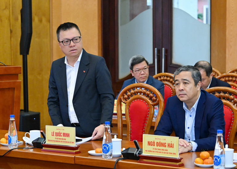 Đồng chí Lê Quốc Minh phát biểu ý kiến tại buổi làm việc. (Ảnh: Thủy Nguyên)